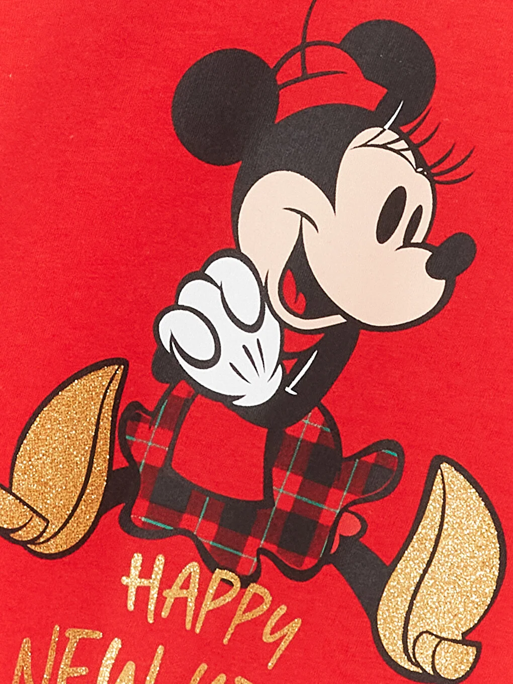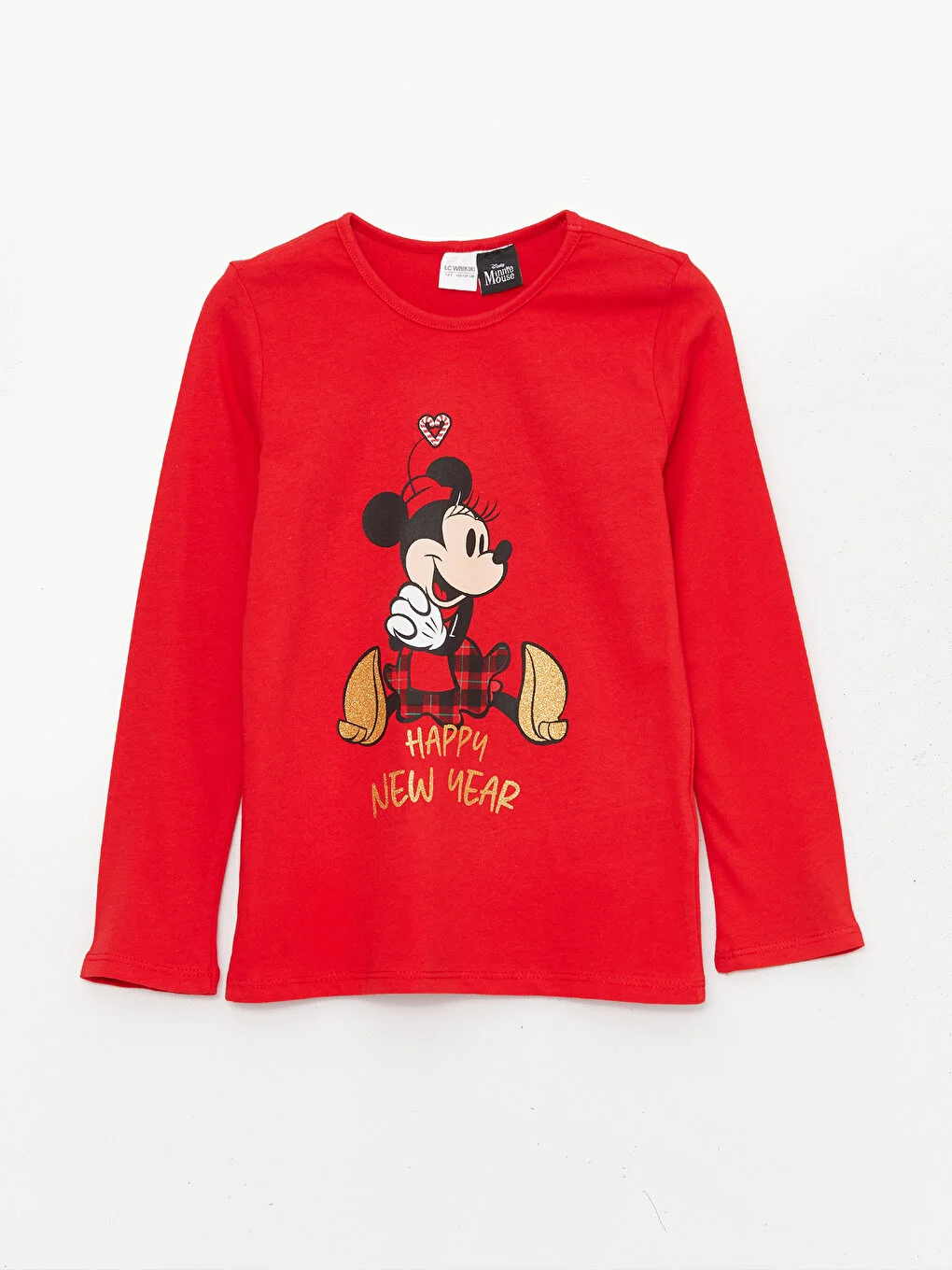Crew Neck Minnie Mouse Printed Long Sleeve Girl Pajama Set