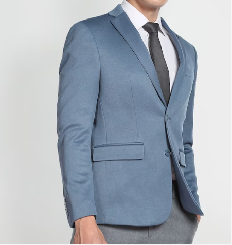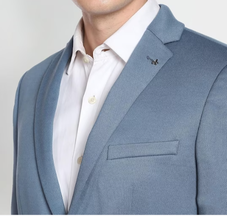 Solid slim-fit single-breasted formal blazer, has a notched lapel collar, button closure, long sleeves, three pockets and double vented back hem